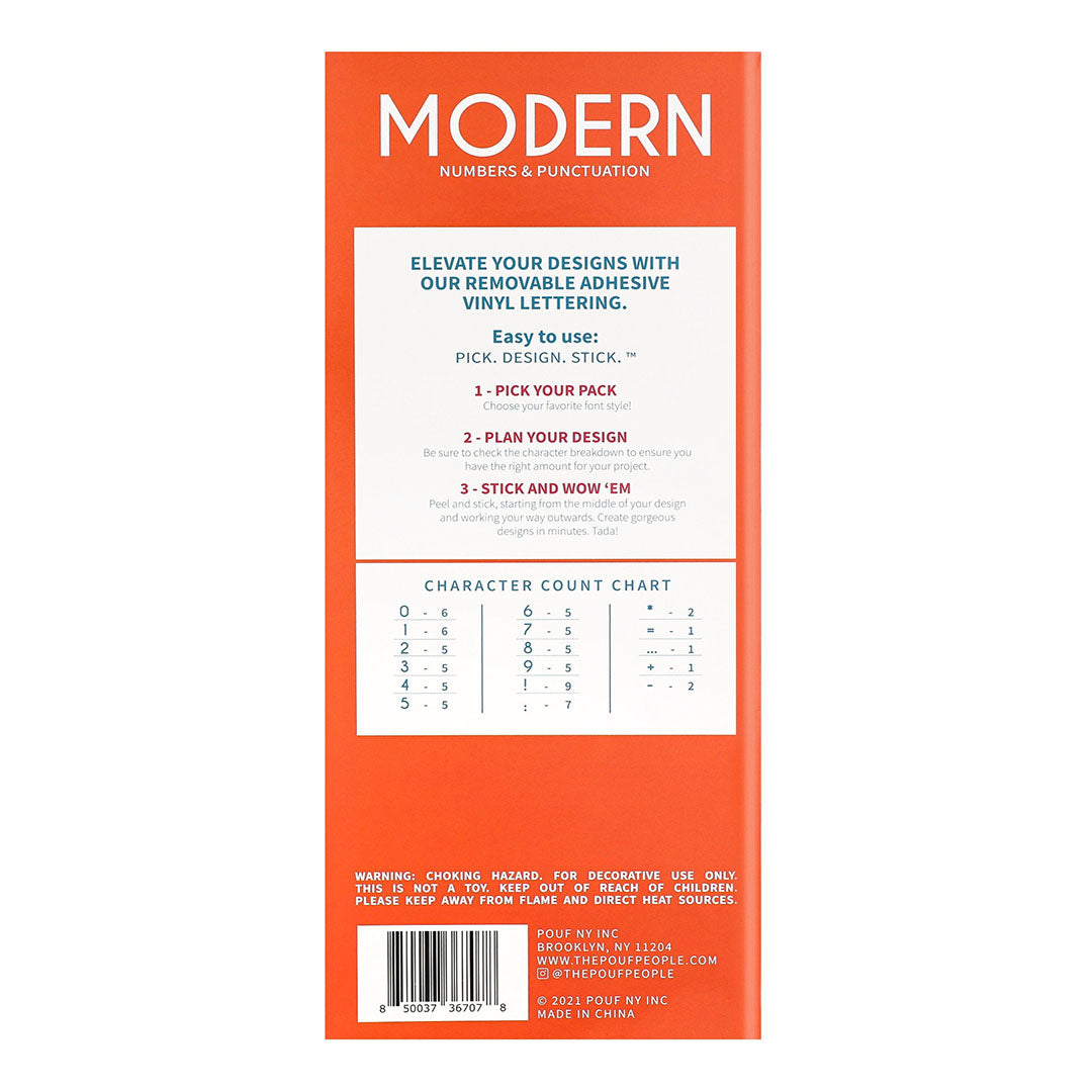 Clean, bold and powerful. Our "Modern" type makes a statement whatever the occasion calls for. We included numbers 0 through 9 with a mix of punctuation and fun surprises to bring your designs to the next level.